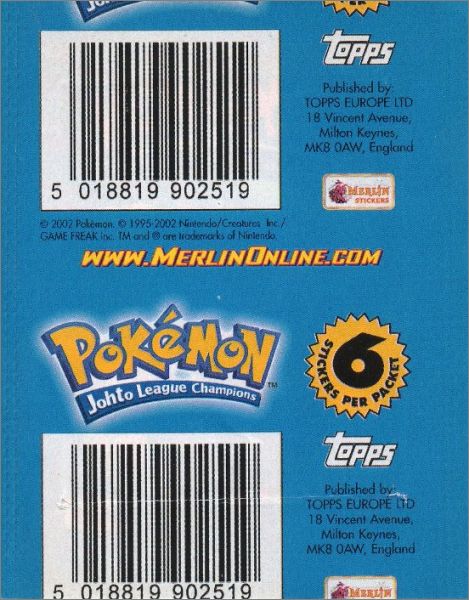 Pokémon Série 5 Johto League Champions - Sticker Merlin 2002