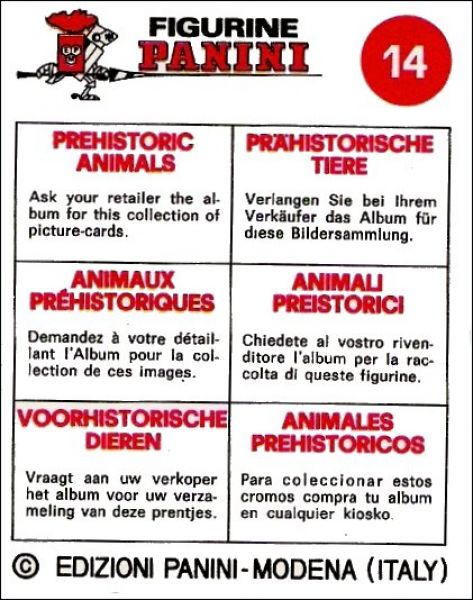 Animaux Préhistoriques - Sticker Album Figurine Panini 1974