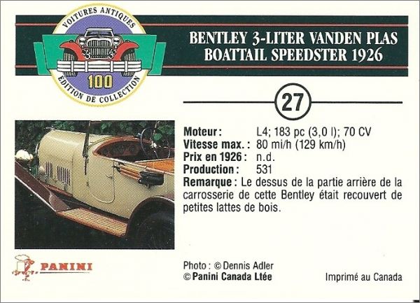 100 voitures antiques - Edition de collection Panini - 1992
