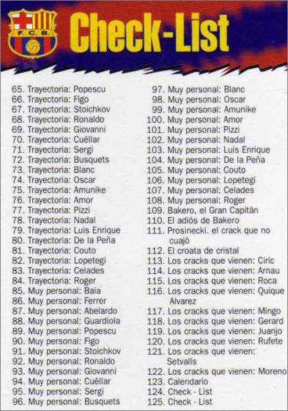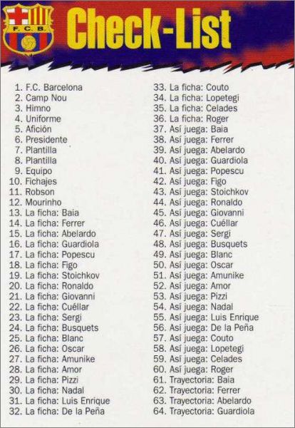 Très belle collection ! Avec à l'époque Ronaldo au meilleur de sa forme, Pep, le superbe Figo, Luis Enrique, Stoïchkov de retour et quelques autres jeunes joueurs de la Masia comme De La Pena, Celades... A posséder !