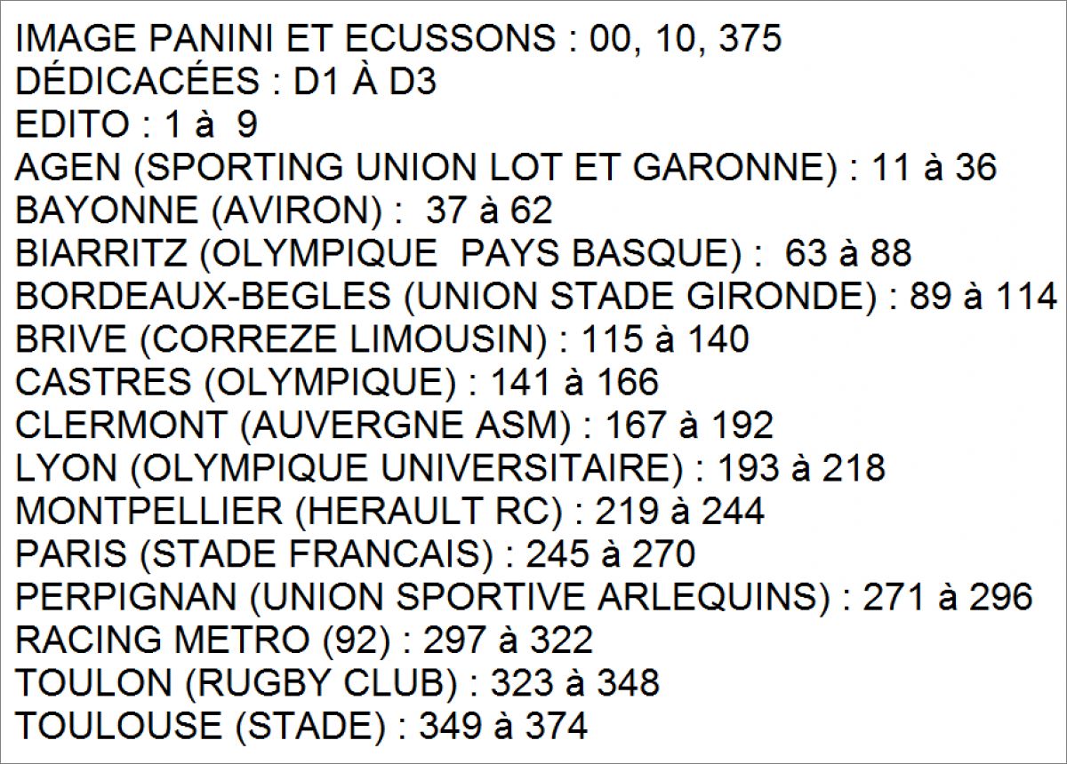 Panini: 1 à 455, 00, D1 à D3 (D = dédicacée)