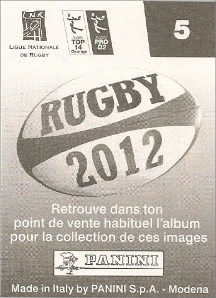 Rugby 2012 - Saison 2011-12 - Sticker Album - Panini France