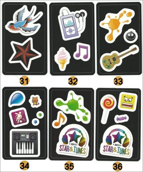 Clic sur l'image pour zoomerEditeur :Par tranche d'achats de 20 € réalisés entre le 20/10/2011 et le 07/12/2011 dans les points de vente précités, le client reçoit une pochette contenant trois cartes, d'une ou plusieurs des quatre catégories de cartes (téléchargement, cartes extra, top stickers ou vie privée des stars)