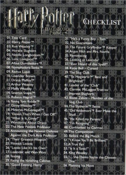 Harry Potter et le prince de sang mélé - Trading Cards