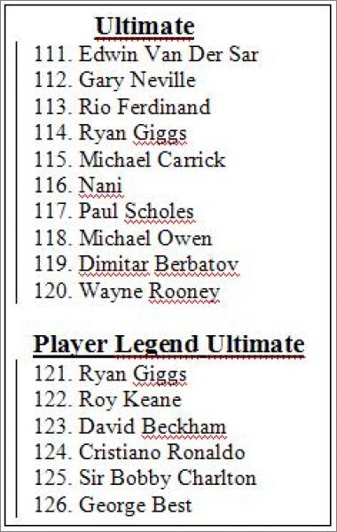 Cards Player Legend Ultimate *leg : 121, 122, 123, 124, 125, 126