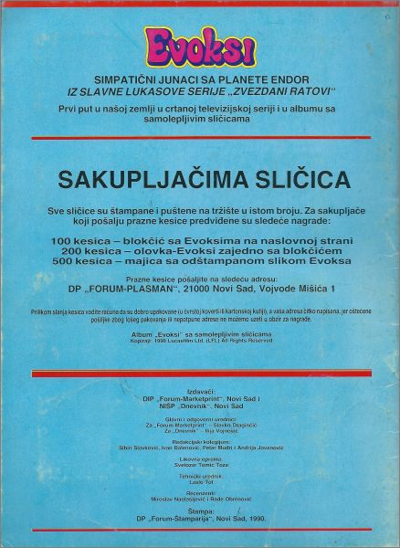 Evoksi / Ewoks - Forum - Sticker Album - Serbie - 1990