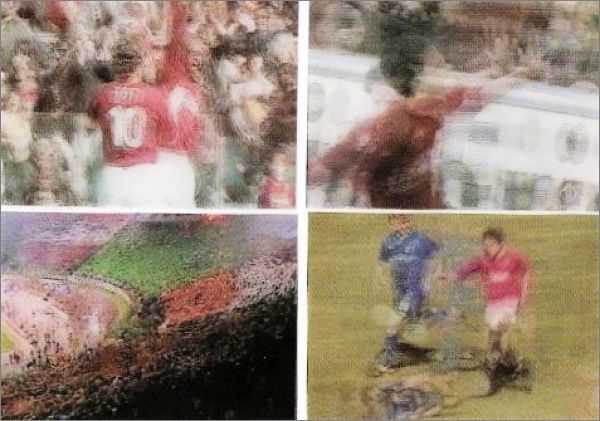 Il s'agit de cartes lenticulaires, qui représentent par exemple un joueur en mouvement, un but...