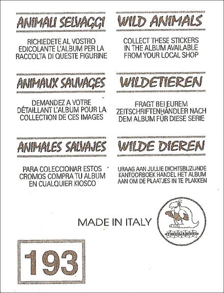 Animaux Sauvages - Sticker album - Service Line - 1994