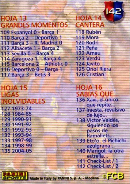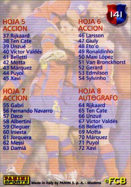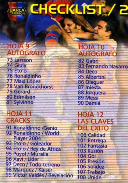 Excellent ! Magnifique collection sur le Dream Team 2 de l'ère Rijkaard, avec les Puyol, Xavi, Iniesta, Marquez, Ronnie, Deco, Eto'o, Giuly et déjà Leo Messi... Tout fan du Barça doit posséder cet album. En version espagnole cette fois (castillan).