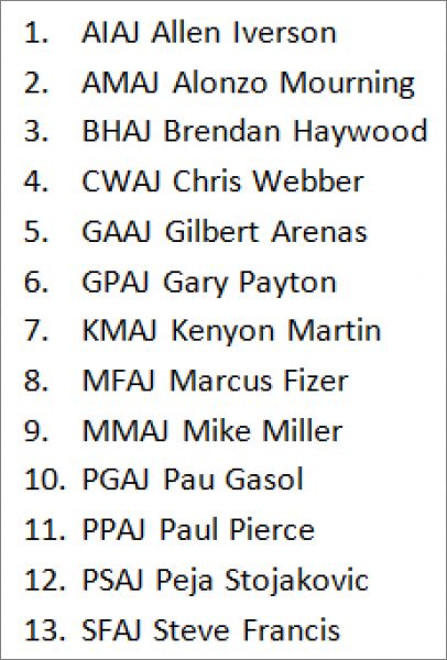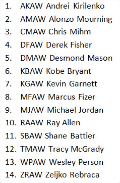 Combo All-Star (CA), Double Team (DT), Dual Shooting (DS) *(4) : CA1, CA2, CA3, CA4, CA5, CA6, CA7, CA8, CA9, CA10, DT1, DT2, DT3, DT4, DT5, DT6, DS1, DS2, DS3, DS4, DS5, DS6, DS7, DS8, DS9