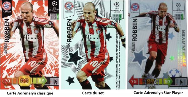 Les cartes sont toutes brillantes. Elles sont un mélange des cartes Adrenalyn classiques et des cartes Adrenalyn Star Players (voir les 2 exemples ci-dessus, cliquer pour zoomer).
