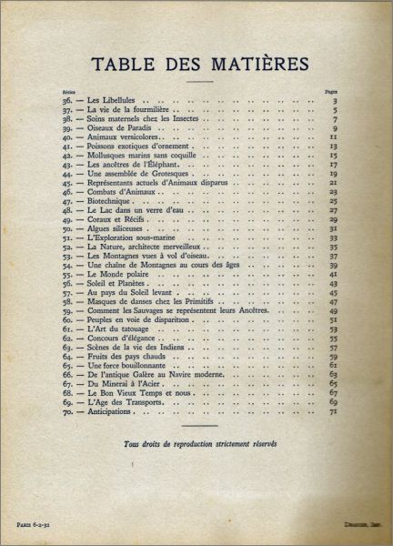 Chocolat Nestlé : série 36 à série 70 avec 12 images numérotées de 1 à 12 (voir le détail dans la fiche)