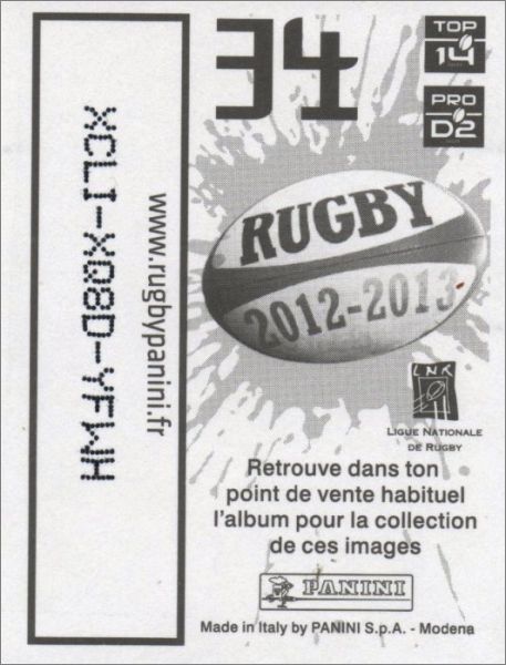 Rugby 2013 - Saison 2012-13 - France - Panini
