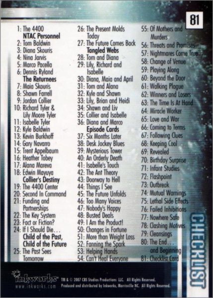 The 4400 : Season Two Premium Trading Cards - Inkworks - USA