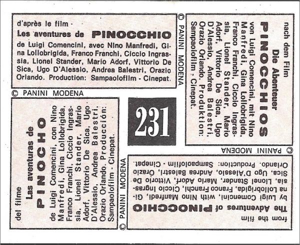 Les Aventures de Pinocchio - Figurine Panini - 1972