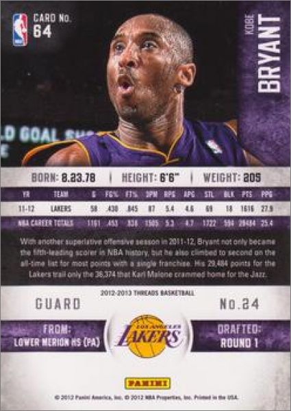 2012-13 Panini Threads NBA Trading Cards - Basketball - USA
