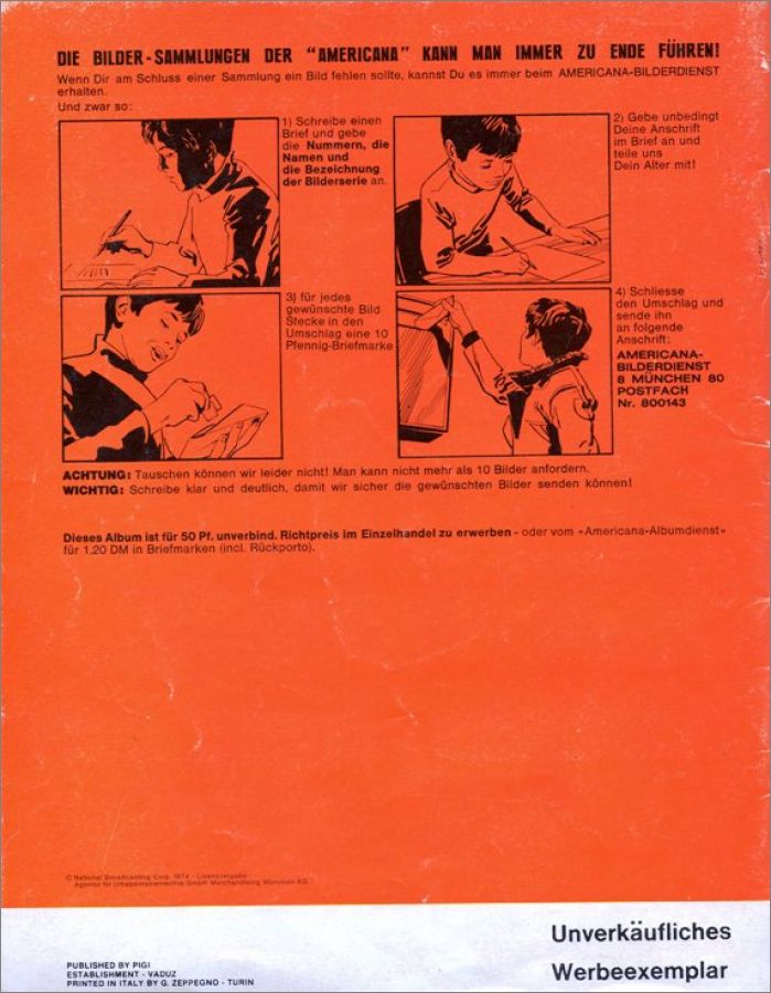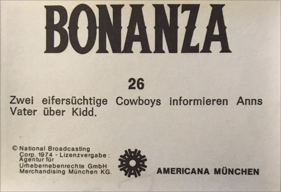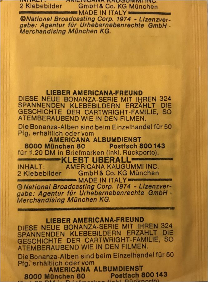 Bonanza - Americana München - Sticker Album - 1974 Allemagne