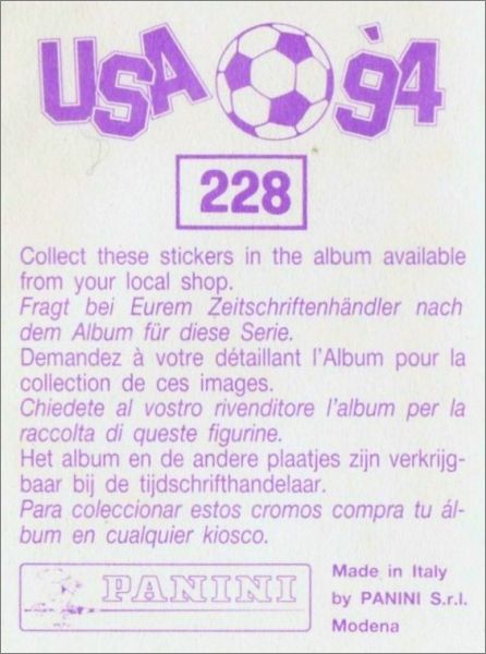 USA 94 World Cup - Panini (Dos Violette) - Allemagne