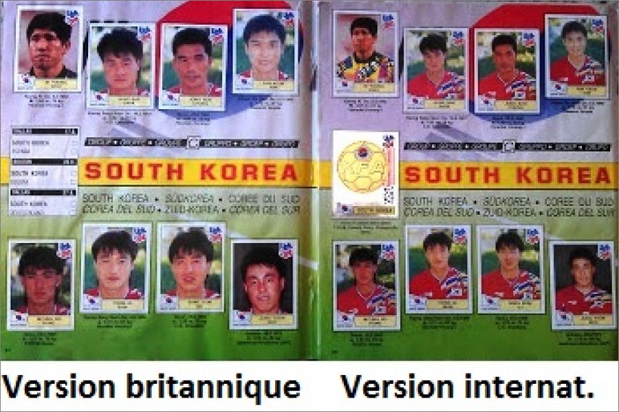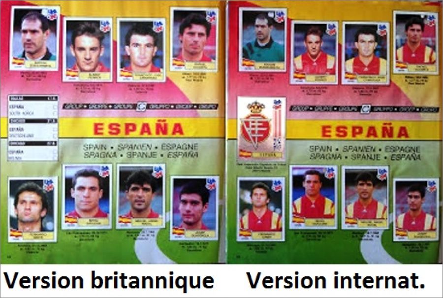 Le dos des images de cet album est écrit en vertEdition britannique : "Les images des joueurs des sélections d'Espagne, de Bolivie, d'Arabie Saoudite, du Cameroun, du Nigeria, d'Argentine, du Maroc et de Corée du Sud sont les mêmes que dans l'édition internationale, mais avec un cadrage plus serré"