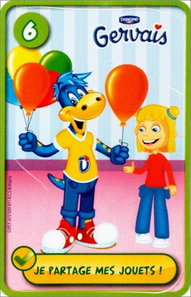 Danone-Gervais: 1 à 8 (2 versions par numéro : Vert V1 à V8 + Rouge R1 à R8)