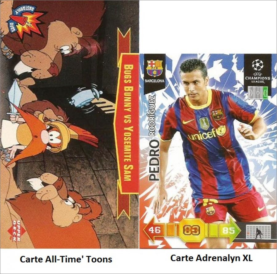 L'image de comparaison de taille représente une carte All-Time'Toons et une carte Adrenalyn XL.
