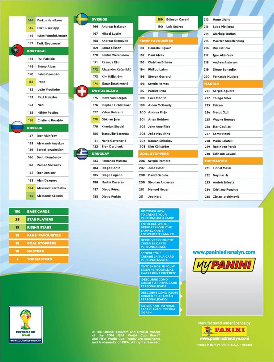 Panini: 1 à 235, L1 à L18 (cartes à édition limitée)