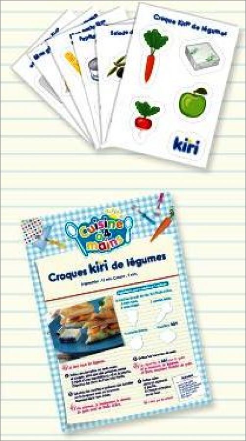 Les images sont à coller sur des fiches de recettes téléchargeables sur le site Internet de Kiri.