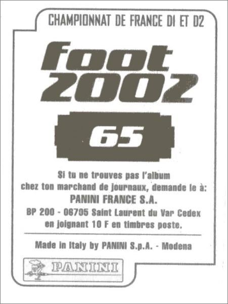 Foot 2002 - Championnat de France de D1 et D2 - Panini