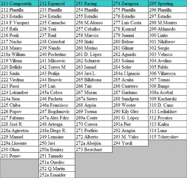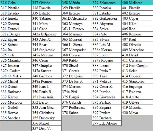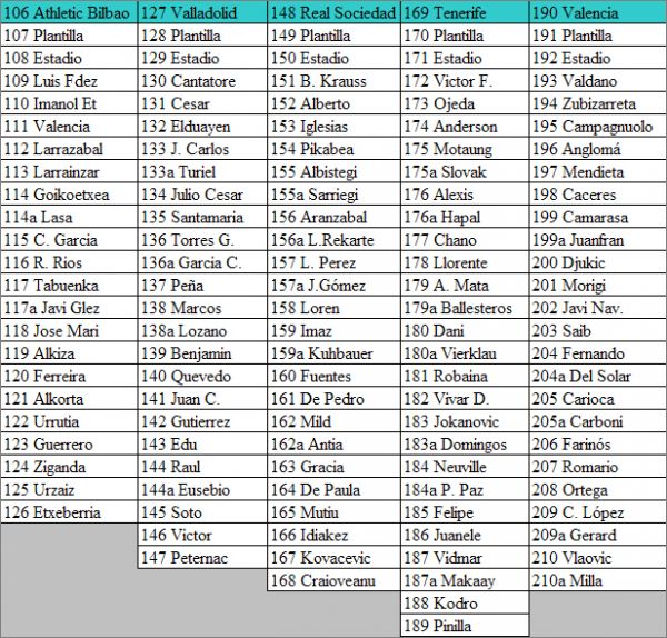 Cartes "Mejores" *mej : 422 à 444 (les cartes 443 « Songo'o » et 444 « Ronaldo » n'ont pas de numéro inscrit dessus)