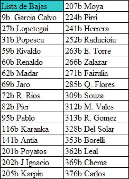 LB - Lista de Bajas
