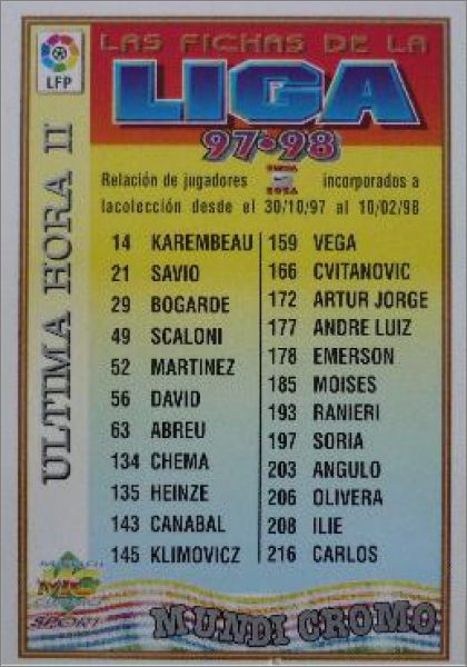 Las Fichas de la Liga 1997 / 1998 - Mundi Cromo - Espagne
