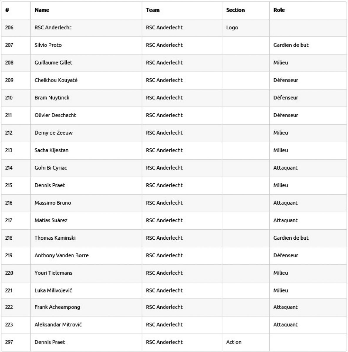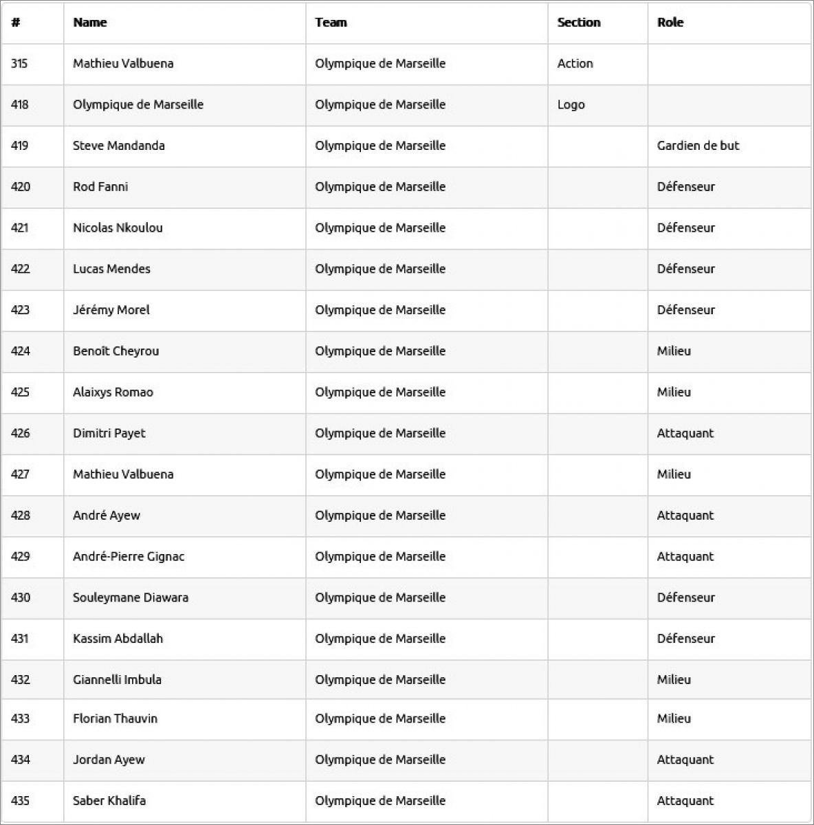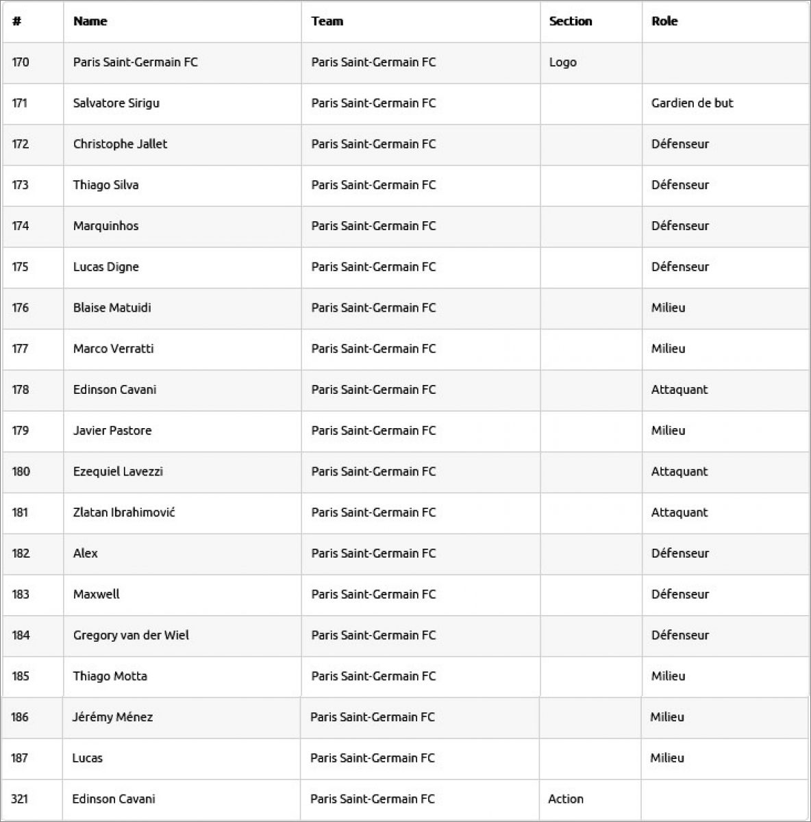 Panini: 00 à 314 (sur 629)