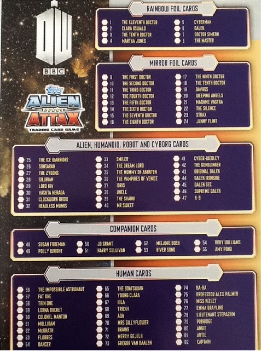 Doctor Who - Alien Attax 50th anniversary edition - Cards