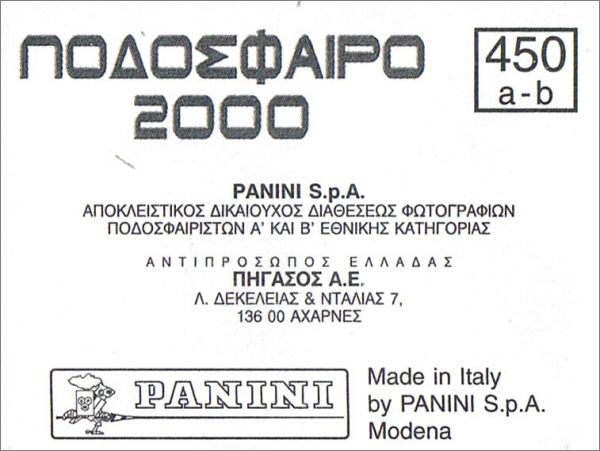 Podosphairo 2000 - Panini - Grèce