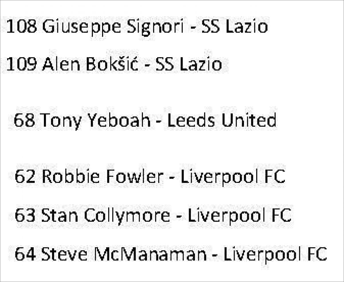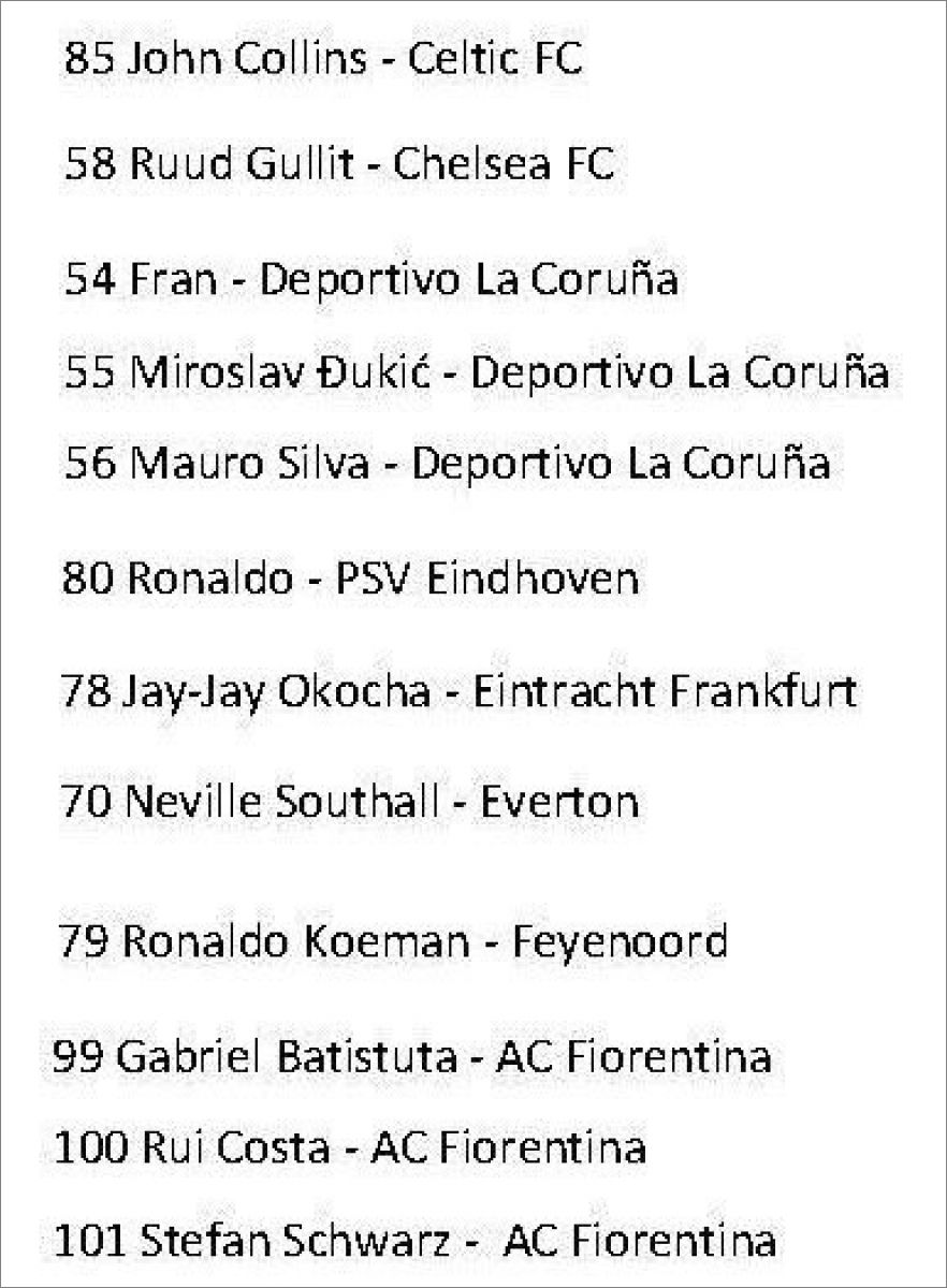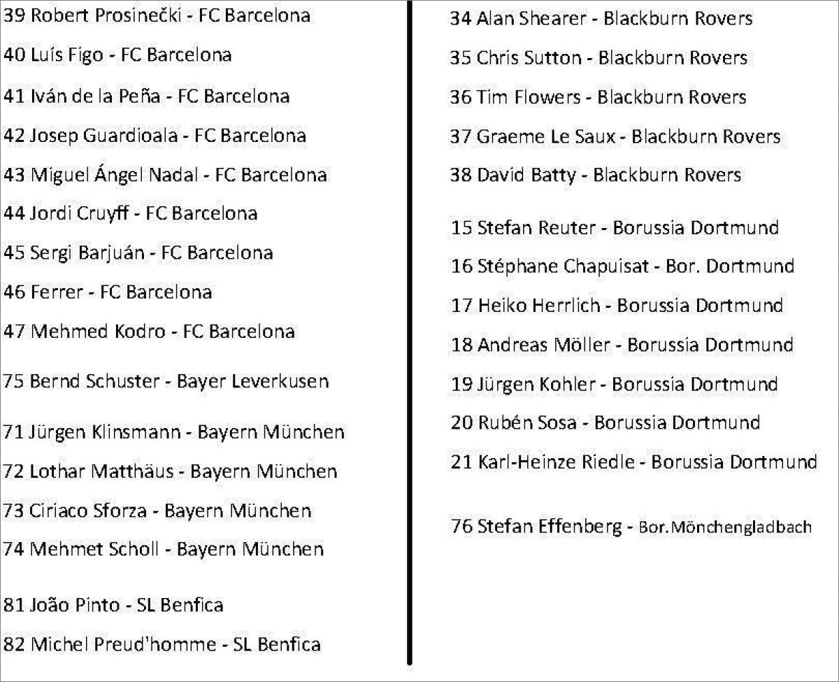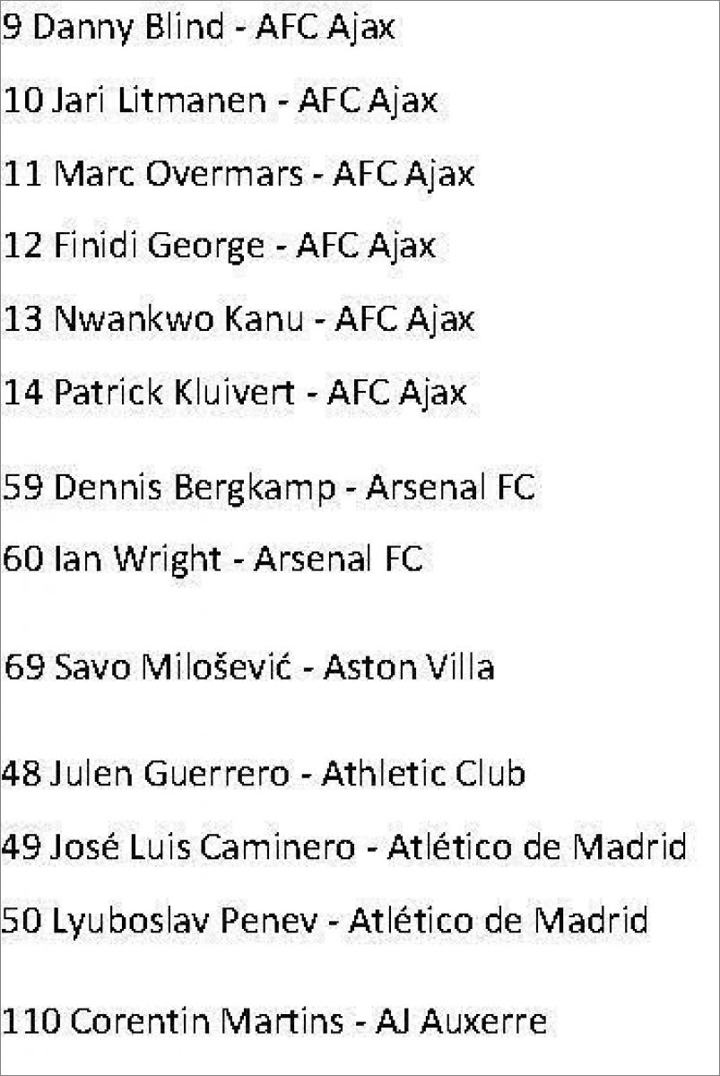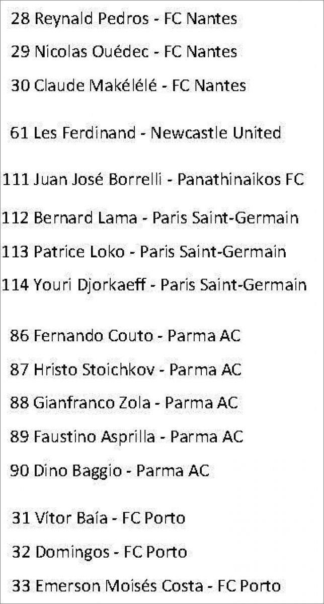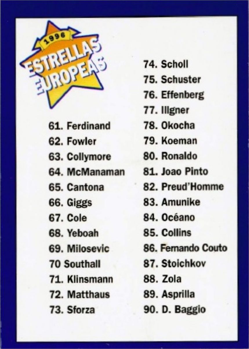 Cette collection est également sortie en Russie sous le nom "Stars du Football 1996" :