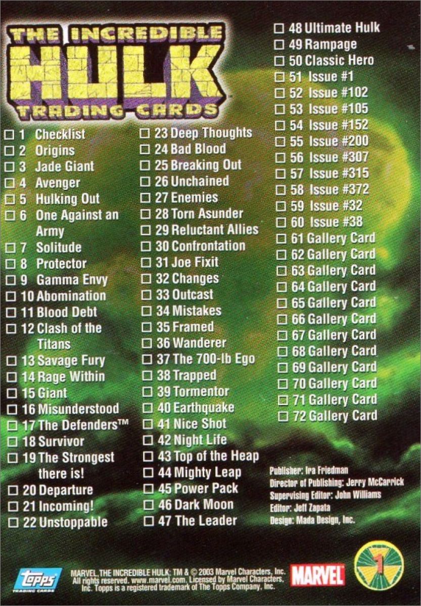 The Incredible Hulk - Topps - Trading Cards Angleterre