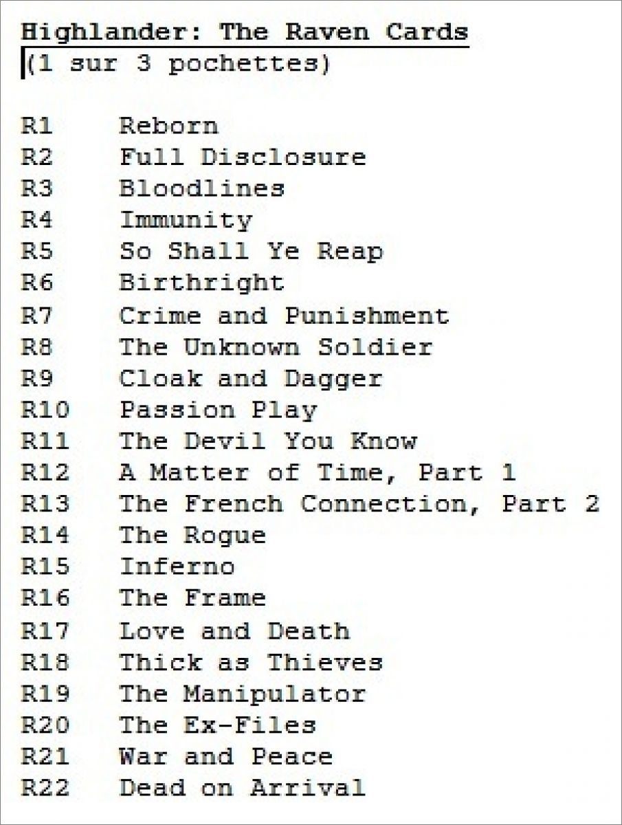 The Raven Cards (1 sur 3 pochettes) *rav : R1, R2, R3, R4, R5, R6, R7, R8, R9, R10, R11, R12, R13, R14, R15, R16, R17, R18, R19, R20, R21, R22