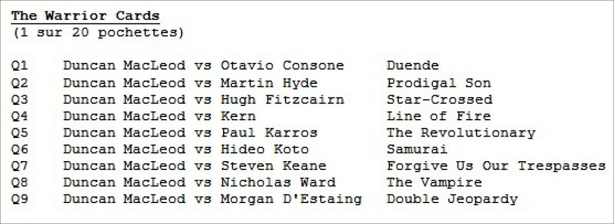 The Warrior Cards (1 sur 20 pochettes) *war : Q1, Q2, Q3, Q4, Q5, Q6, Q7, Q8, Q9