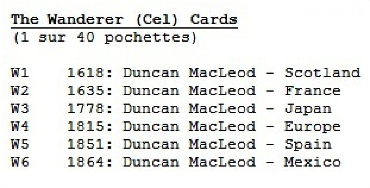 The Wanderer (Cel) Cards (1 sur 40 pochettes) *wan : W1, W2, W3, W4, W5, W6