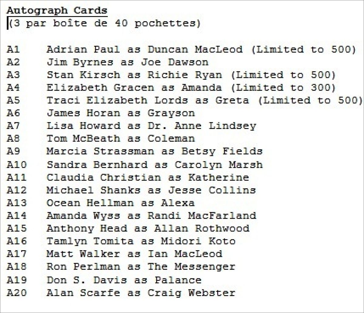 Autograph Cards (3 par boîte de 40 pochettes) *aut : A1, A2, A3, A4, A5, A6, A7, A8, A9, A10, A11, A12, A13, A14, A15, A16, A17, A18, A19, A20