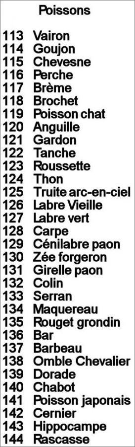 Liste des Poissons