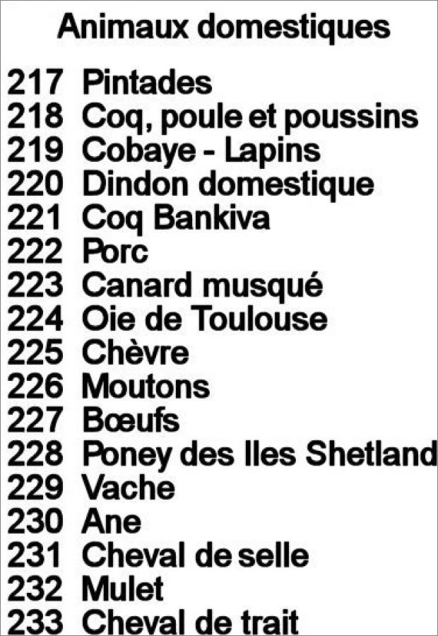 Liste des Animaux domestiques