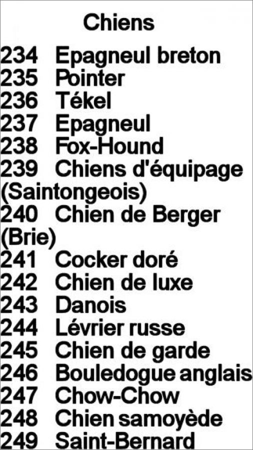 Liste des Chiens
