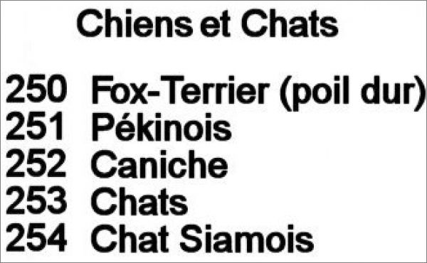 Liste des Chiens et Chats