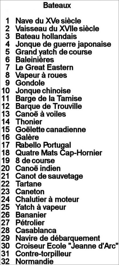 Liste des Bateaux