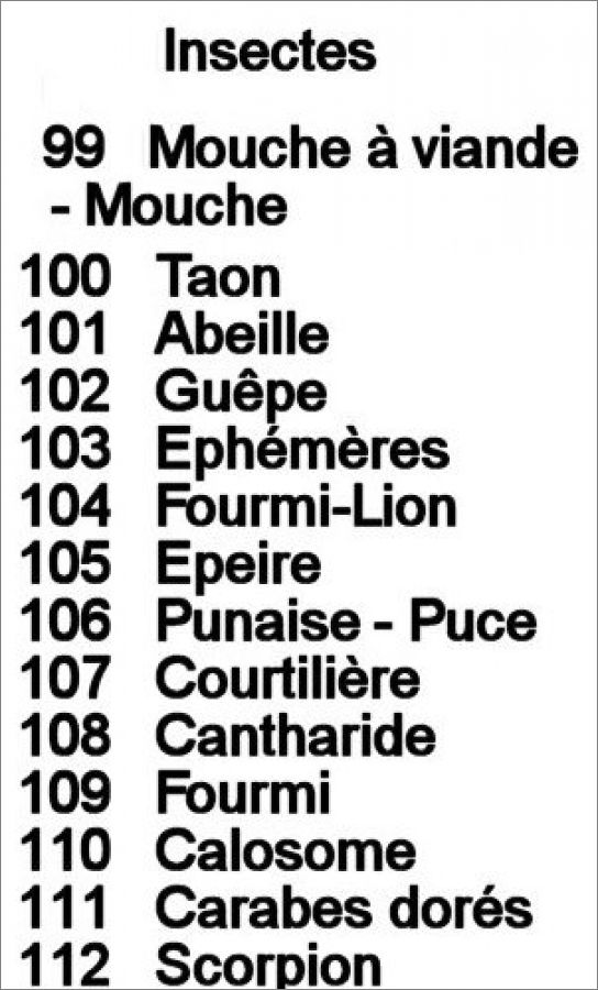 Liste des Insectes