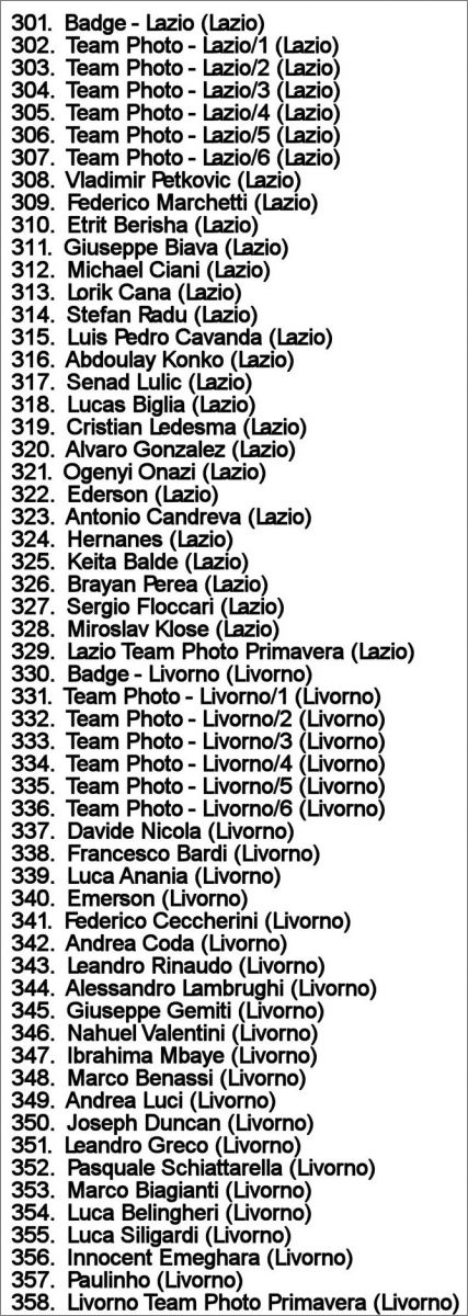 Panini : 00,1 à 474 sur 822