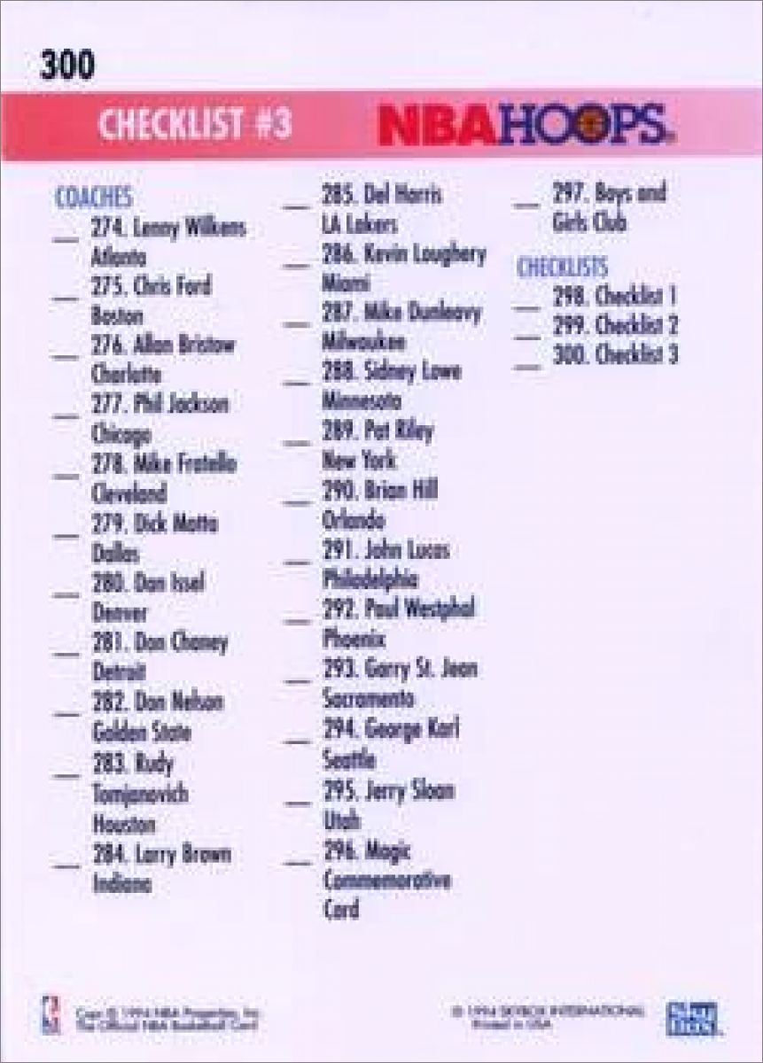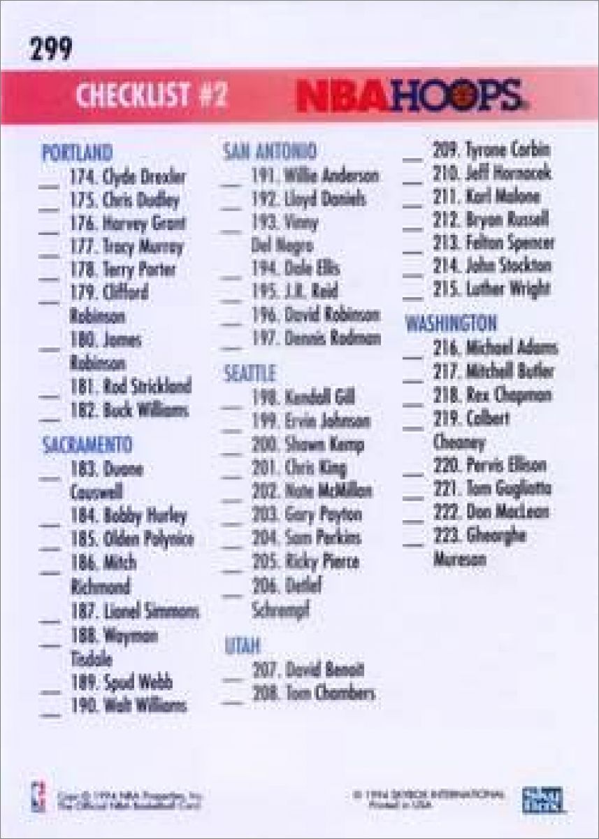 1994-95 Skybox Hoops NBA Basketball - USA