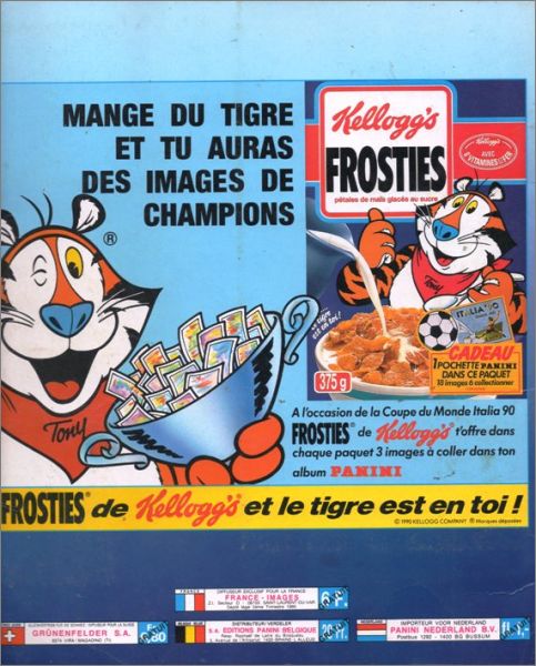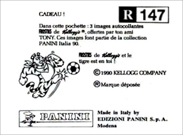 existe deux séries de stickers éditées par Kellogg's (céréales Frosties) numérotées de A à R et qui présentent la particularité de n'avoir aucun logo officiel sur le recto de l'image.