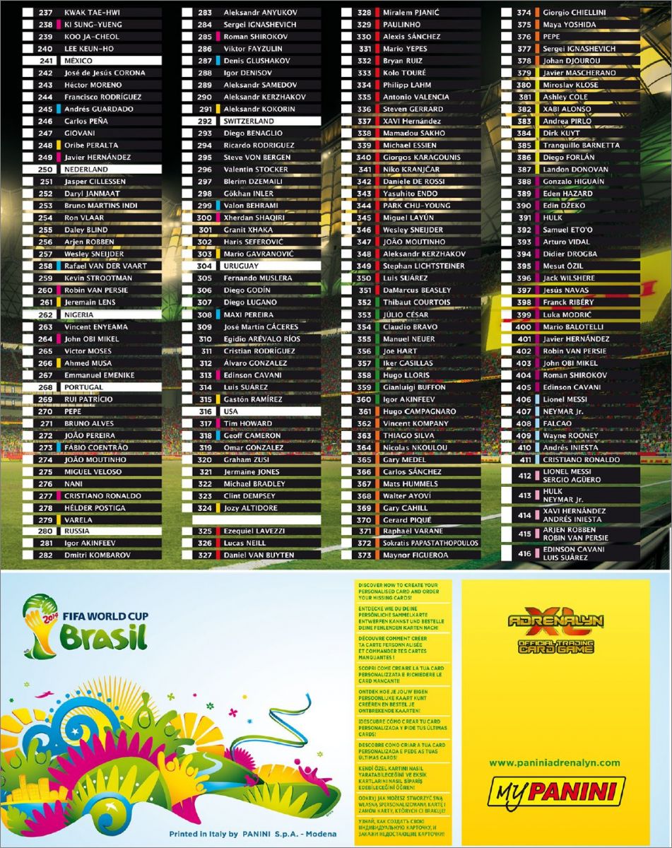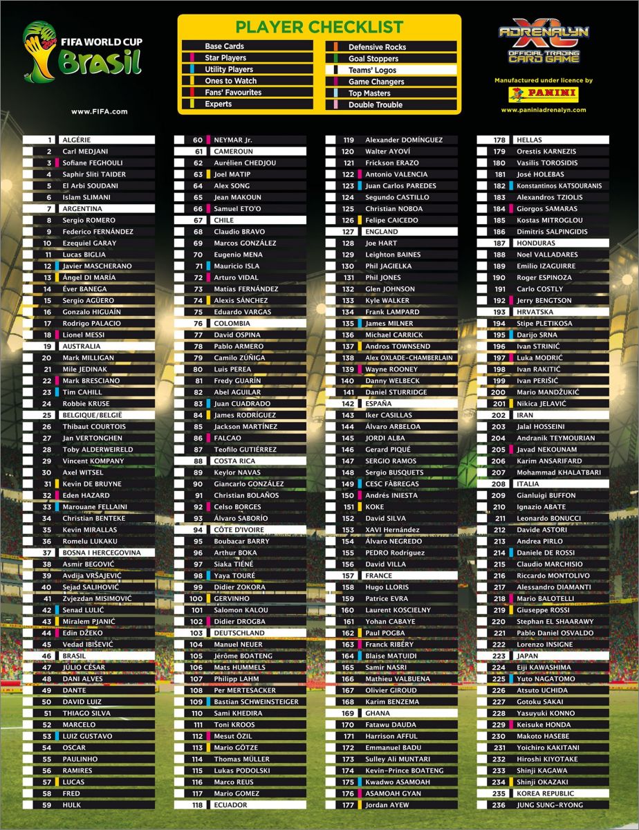 FIFA World Cup Brazil Adrenalyn XL Trading Card 2014 Part 2Le classeur contient 26 feuilles : soit 234 cartes (ou 468 cartes en recto/verso)